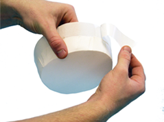 用普通海绵加水润湿,挤出多余的水分直到海绵变湿。在大坝的Aquasol水溶性胶带部分轻轻点拭海绵。湿润的海绵会重新激活胶水,确保空气渗透性为零。