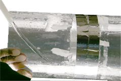 撕下大坝外围的衬里,完全暴露胶水,避免污染物和杂物接触
