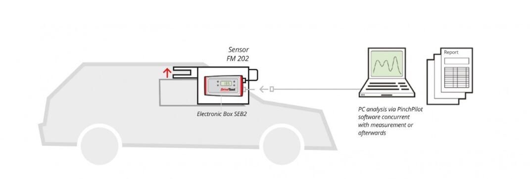 FM202传感器 力进入:单侧测量。 范围:0–600牛顿 测量容差:0-100牛顿时为+/-3牛顿,大于100牛顿时为+/-3% 弹簧刚度:10牛顿/毫米 间隙宽度:小40毫米 面积:80 x 80 mm 力传感器:应变电桥 尺寸:100 x 300 x 190 毫米 重量:4.2公斤 | SEB2显示单元 数据记录模块(显示单元SEB2),配备LCD显示屏、LED状态指示灯、按钮和串行接口 可选的PC控制测量 由9V方块电池供电 板载实时时钟 可存储约100次测量数据 传感器与PC接口 峰值力和有效力的显示 通过/未通过评估 | PC分析软件 PinchPilot 多语言(德语、英语、意大利语、法语、西班牙语) 力与时间的图形显示 相关参数的计算 根据不同标准进行评估 支持用户自定义标准 打印报告 数据导出(Excel、CSV、PDF) |